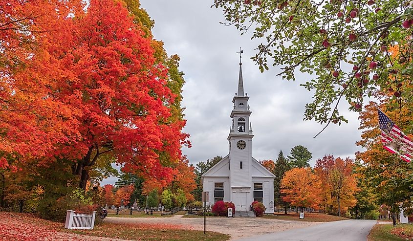 Sandwich, New Hampshire, igreja no outono.