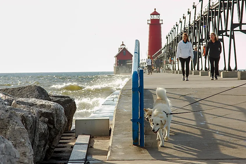 O charme de Grand Haven reside em seu cenário encantador à beira-mar, emoldurado por praias arenosas, águas cintilantes e florestas exuberantes. Os turistas podem acessar algumas das melhores propriedades à beira-mar do Lago Michigan no Grand Haven State Park. Este espaço natural de 48 acres abriga trechos de praias imaculadas com águas azuis cristalinas. O Grand Haven South Pier oferece uma avenida pitoresca onde você pode desfrutar de passeios tranquilos e observar a água. No final da passarela há um farol visivelmente vermelho, perfeito para uma oportunidade fotográfica.