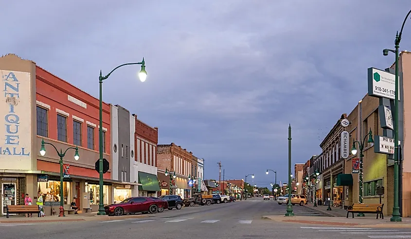O antigo distrito comercial em Will Rogers Boulevard, em Claremore. Crédito da imagem Roberto Galan via Shutterstock.