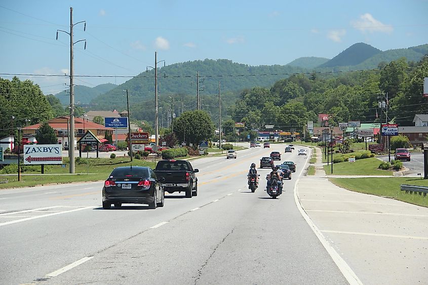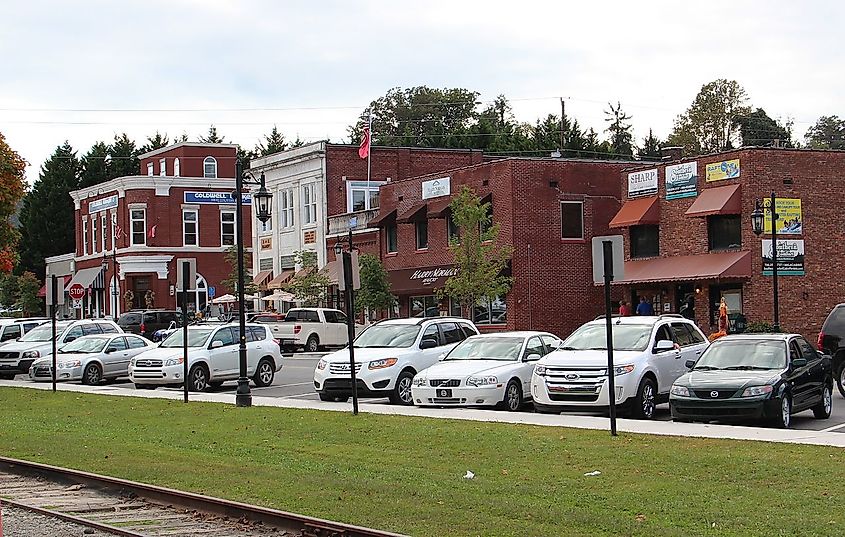 Vista da rua principal de Clayton, Geórgia. Por Harrison Keely, CC BY 4.0, Wikimedia Commons.