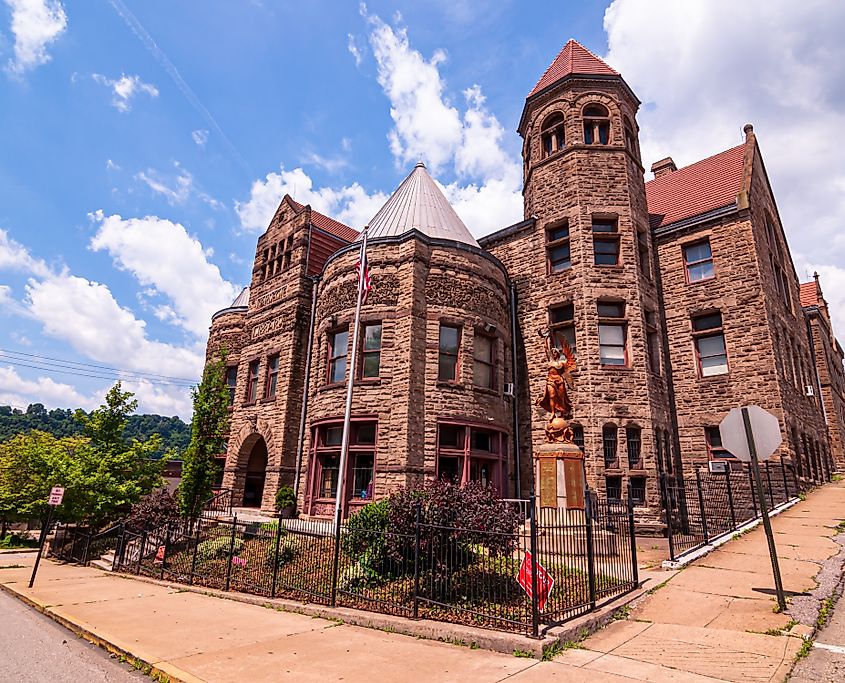 Vista da Biblioteca Carnegie na cidade de Braddock, Pensilvânia. Crédito editorial: woodsnorthphoto / Shutterstock.com