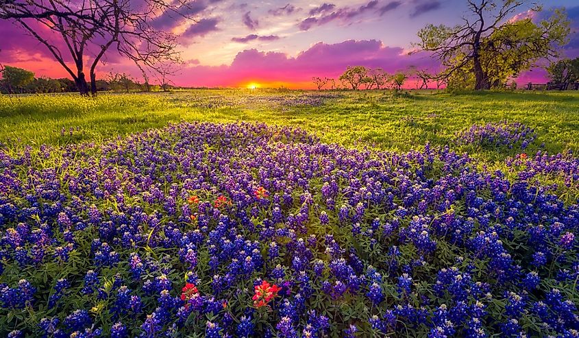 Dito isso, uma aposta infalível para começar com o pé direito é seguir 80 milhas a oeste até Fredericksburg. Fundada por imigrantes alemães em 1846, esta histórica cidade central do Texas não é apenas um dos pontos focais para flores de bluebonnets, pincéis indianos, tansies roxos, papoulas vermelhas e outras flores silvestres alegres, mas também o epicentro da região vinícola do Texas, com 75 das 100 vinícolas da região localizadas no condado de Gillespie.