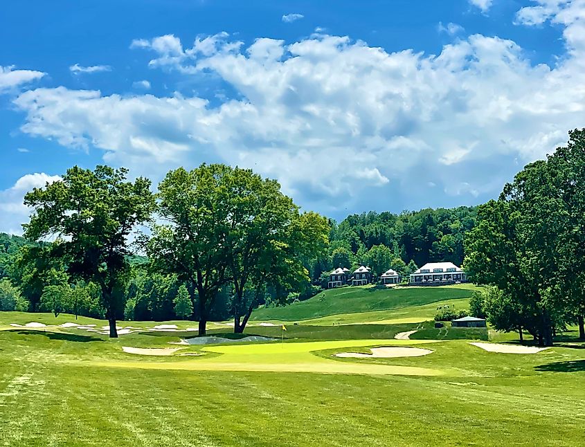 Campo de golfe Mystic Rock, Nemacolin Resort em Farmington, Pensilvânia. Por daveynin dos Estados Unidos, CC BY 2.0, via Wikimedia Commons