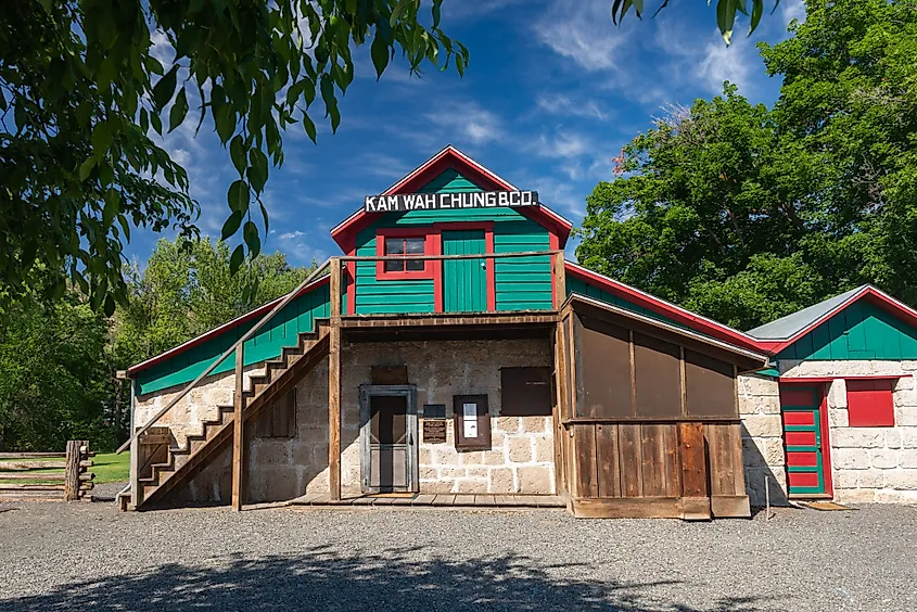 O sítio histórico do estado de Kam Wah Chung em John Day. Por Gary Halvorson, Oregon State Archives – Este arquivo foi contribuído para o Wikimedia Commons pelos Oregon State Archives como parte de um projeto de cooperação. A doação foi facilitada pela Biblioteca Pública Digital da América, por meio de seu parceiro Northwest Digital Heritage. Registro no catálogo de origem Identificador DPLA: 51b206bc672d5cd222e994dd563ba46d Identificador dos Arquivos do Estado de Oregon: 20190712-2883, CC BY 4.0,Wikimedia Commons.
