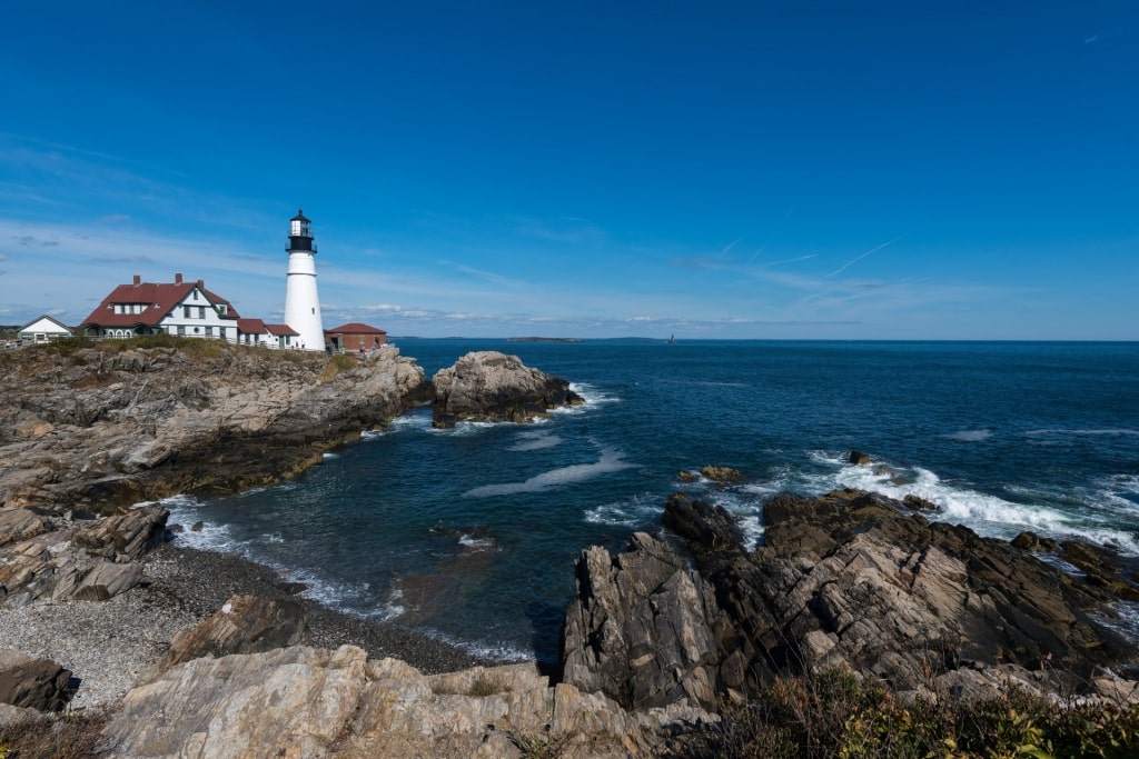 Dirija pela costa acidentada do Maine para admirar o Portland Head Light no Fort Williams Park e as grandes casas, galerias de arte e boutiques de designers de Kennebunkport. Não perca a oportunidade de almoçar suculentos rolinhos de lagosta.