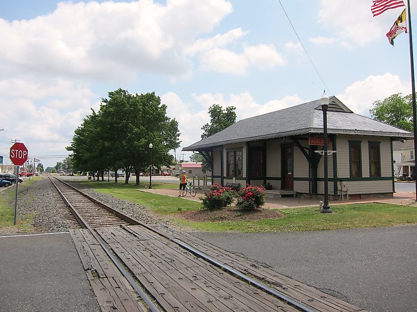 Uma estação ferroviária restaurada em Hurlock, Maryland. Crédito da imagem: Art Anderson via Wikimedia Commons.
