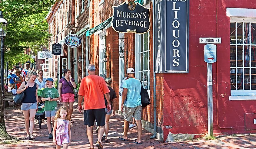 Rua repleta de boutiques em Nantucket, Massachusetts. Crédito da imagem Mystic Stock Photography via Shutterstock