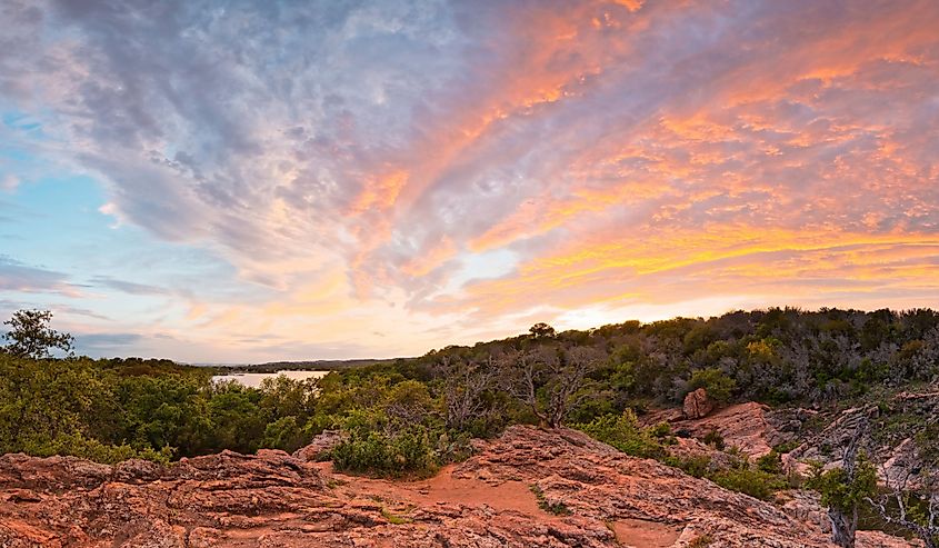 Granite Hills of Inks Lake State Park, no condado de Burnet. Crédito da imagem Silvio Ligutti via Shutterstock.