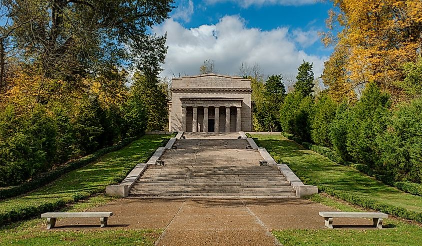 O primeiro edifício do Lincoln Memorial (1911) no Parque Histórico Nacional do local de nascimento de Abraham Lincoln em Hodgenville, Kentucky.