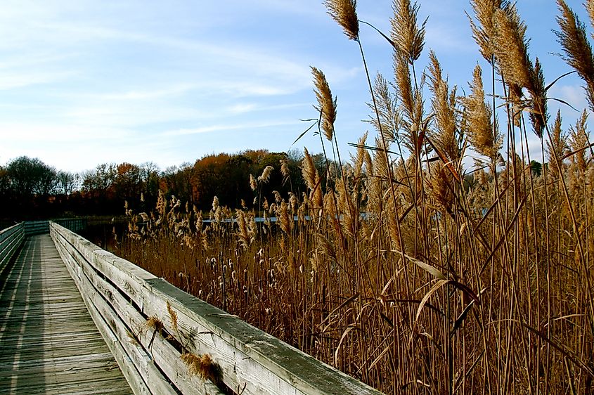 Uma trilha no Prime Hook National Wildlife Refuge em Milton, Delaware.