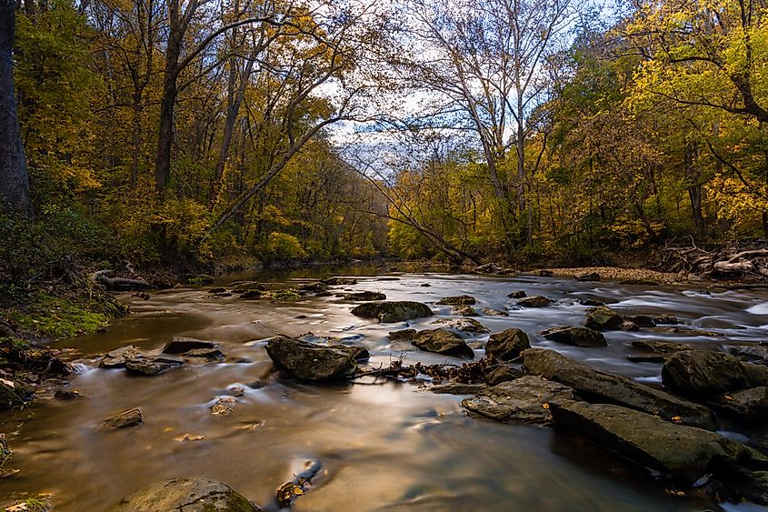 Um rio no Parque Estadual White Clay Creek em Newark, Delaware.