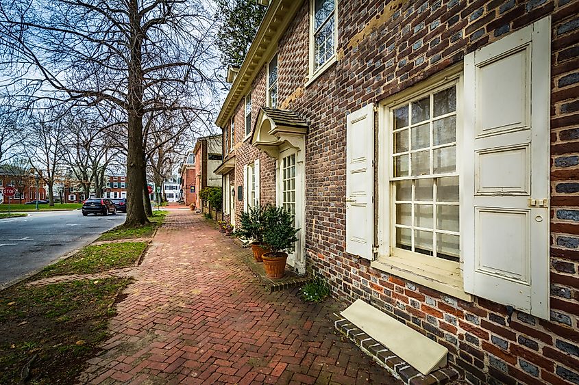 Edifícios rústicos na cidade de New Castle, Delaware. Crédito editorial: George Wirt/Shutterstock.com