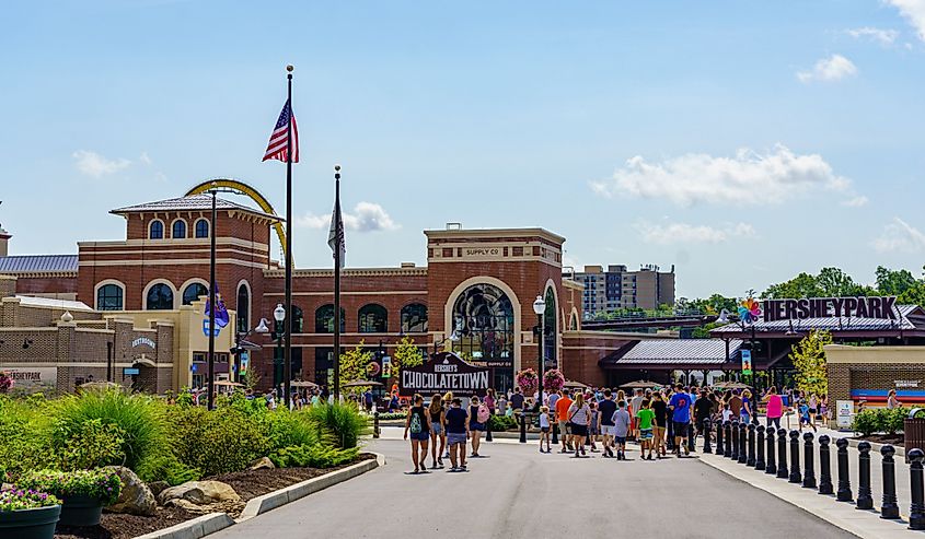 A entrada do Hershey Park, Hershey, Pensilvânia. Crédito da imagem George Sheldon via Shutterstock
