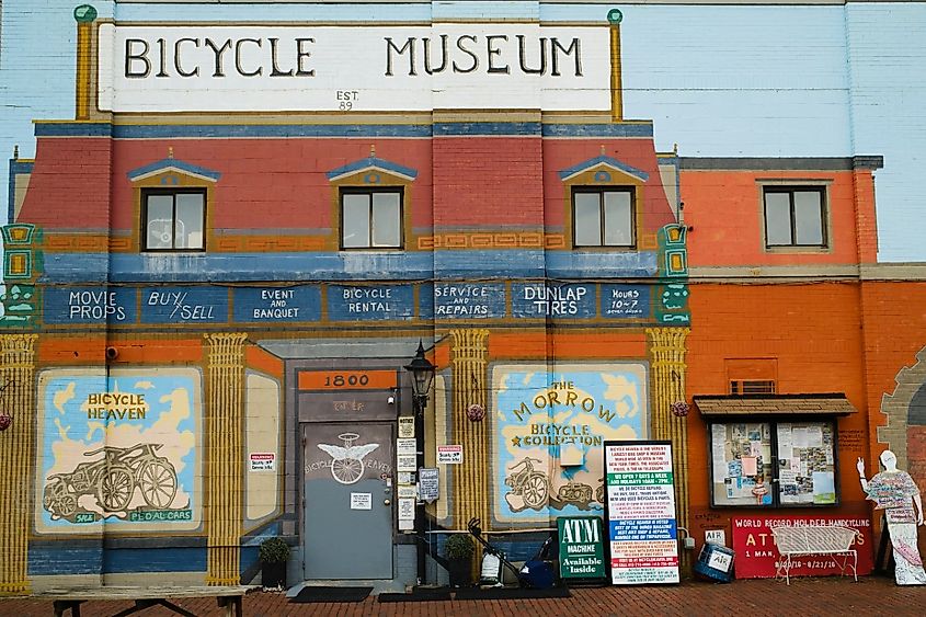 Fora do Museu da Bicicleta, conhecido como Bike Heaven em Pittsburgh, Pensilvânia. Crédito da imagem MehmetTeke via Shutterstock