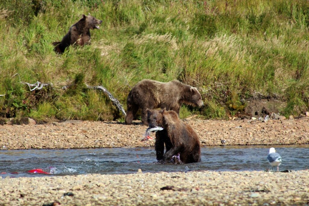 Os ursos passam grande parte da temporada de verão em busca de alimento e pesca para engordar para o torpor do inverno. Essas terras protegidas têm muitas frutas silvestres para eles, além de uma abundância de salmão vermelho na temporada.