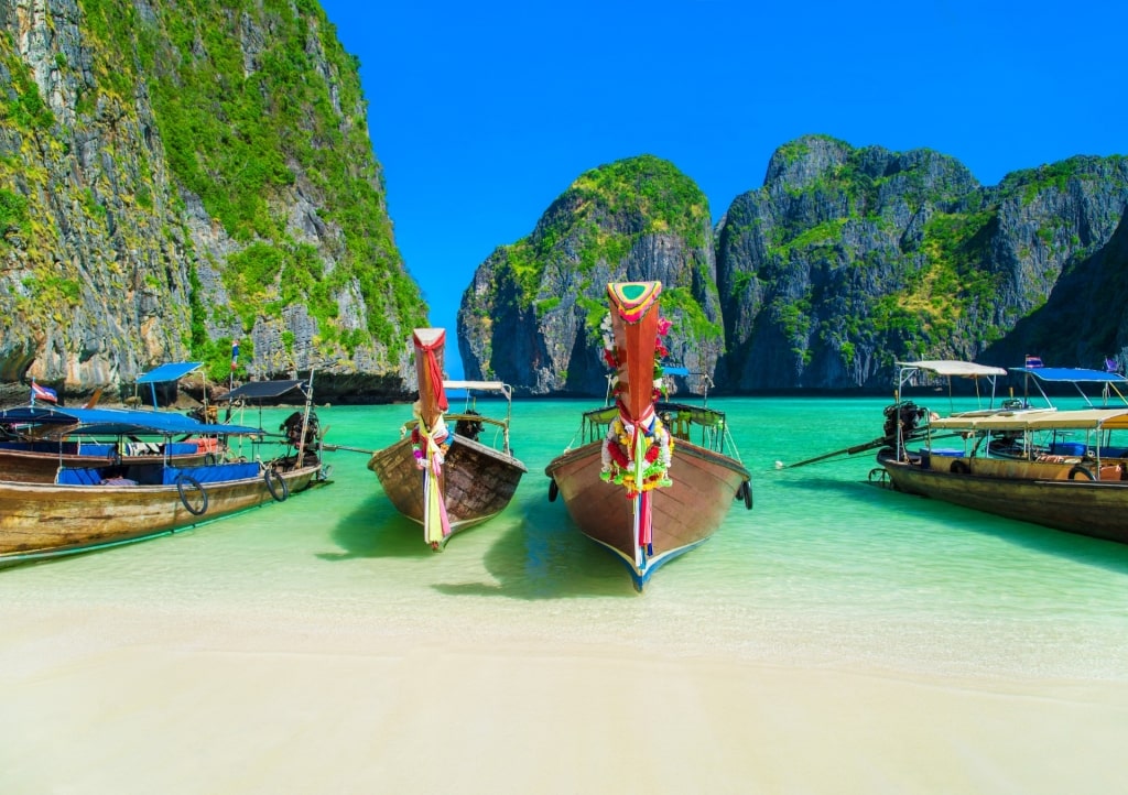 Com impressionantes cársticos calcários cobertos de folhagens subindo dramaticamente das águas azul-turquesa do Mar de Andamão, toda a área é quase impossivelmente fotogênica.