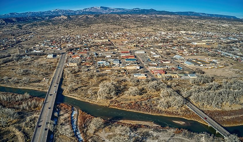 A rodovia 38 chega à cidade montanhosa de Questa, no Novo México. Crédito da imagem Nolichuckyjake via Shutterstock.com