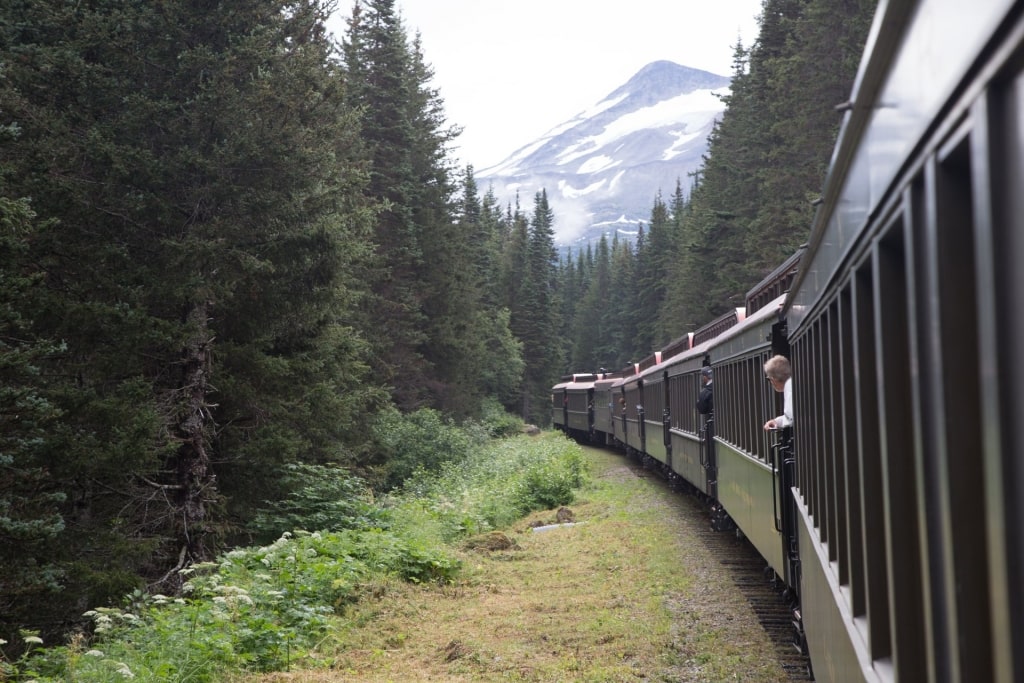 Você verá seções desta trilha às vezes pantanosa e às vezes gelada no conforto da ferrovia de bitola estreita White Pass & Yukon Route. Foi concluído em 1900 e é sem dúvida uma das mais belas viagens de trem da América do Norte.