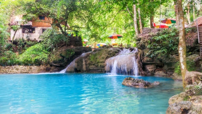 Kawasan Falls é um destino turístico popular, por isso possui instalações como restaurantes e armários com moedas. É um pouco difícil caminhar até as cataratas, então use sandálias confortáveis.