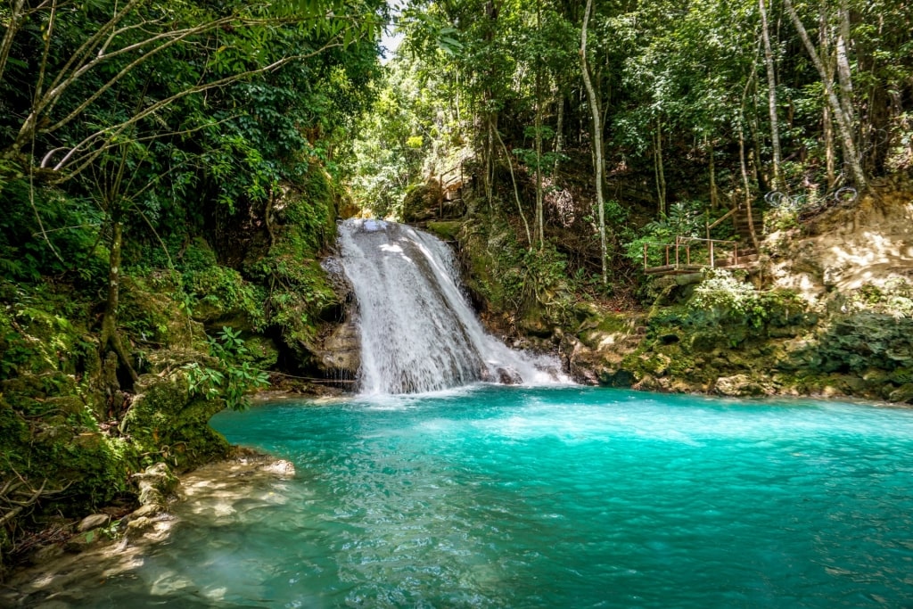 Também perto de Ochos Rios estão as Cataratas do Rio Dunn, que você pode escalar com um guia. Do topo, você tem vistas deslumbrantes sobre a paisagem circundante.