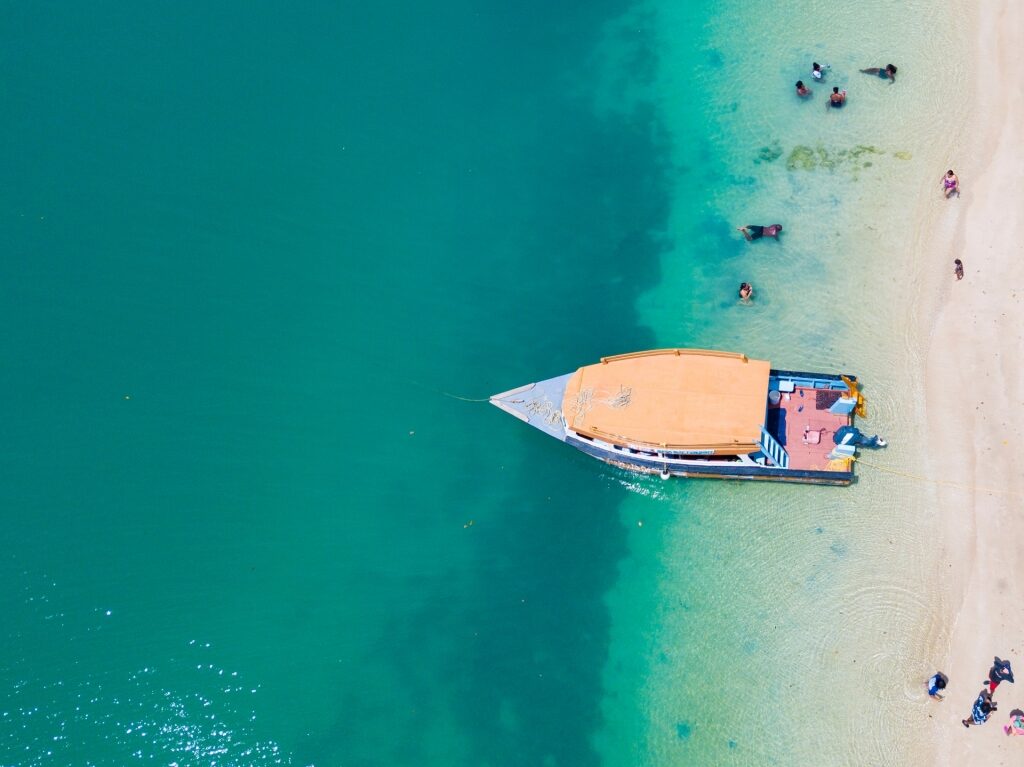 No mar, há dois resorts privados para explorar em De Palm Island e Renaissance Island. Ambas oferecem atividades como esportes aquáticos e mergulho com snorkel, sendo a Ilha Renaissance famosa por sua Praia Flamingo, com um bando de flamingos cor de rosa.