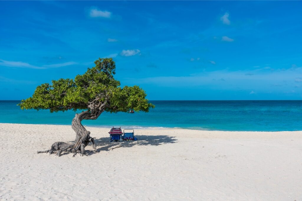 Candidata regular aos prêmios de “melhor praia do mundo”, Eagle Beach fica na costa oeste de Aruba, a poucos quilômetros ao norte da capital, Oranjestad.