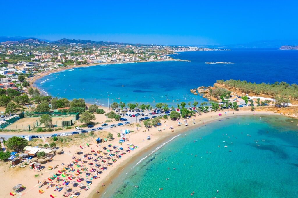 Creta é o lar de algumas das melhores praias da Grécia, a maioria das quais fica fora das principais cidades de Heraklion, Rethymnon e Chania, o que significa que o transporte pode ser um problema se você não alugar um carro. O mesmo não acontece com Agioi Apostoloi, duas praias encantadoras a menos de três quilómetros do centro histórico de Chania.