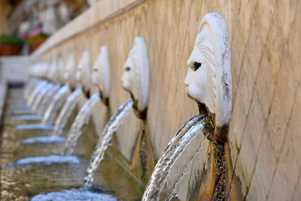 No coração da aldeia está o “kefalovrissi”, uma série de cabeças de leão na foz da nascente que funcionam como bica para a água corrente, considerada rica em ferro. A fonte fica sob a sombra de plátanos e os edifícios circundantes abrigam tavernas com culinária local, lindos cafés e lojas que vendem arte popular.