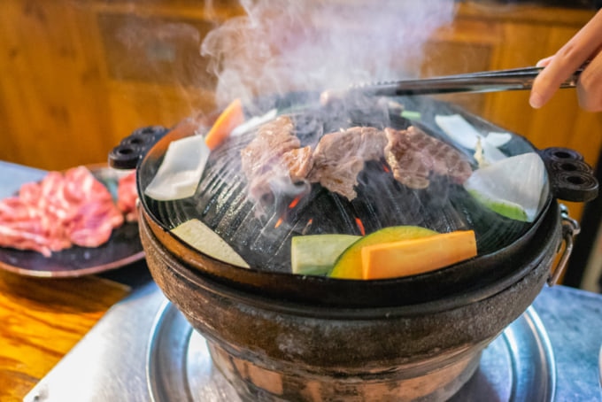 Usando a transliteração do conquistador mongol Genghis Khan, este popular prato de cordeiro recebeu esse nome devido à crença de que o cordeiro era considerado a carne preferida dos soldados mongóis. Ao contrário da maioria das regiões do Japão, o cordeiro é mais comumente consumido como carne em Hokkaido, principalmente devido ao fato de a ilha ter as únicas fazendas de ovelhas por muitos anos. O Jingisukan geralmente é preparado pelos próprios clientes em uma frigideira ou grelha. A carne é cozida no meio com vários vegetais colocados nas bordas para “pegar” os deliciosos respingos de gordura durante o cozimento.