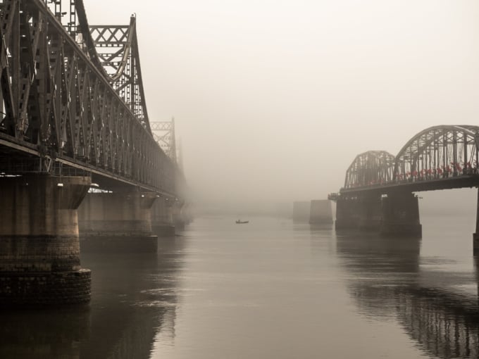 A maior cidade de ambos os lados da fronteira, Dandong é o ponto onde a ferrovia da China entra na Coreia do Norte, com comboios regulares que transportam mercadorias e pessoas entre a fronteira e a capital norte-coreana, Pyongyang. Olhar para o outro lado do rio, a partir da fronteira chinesa, tem uma atmosfera um tanto misteriosa ao comparar as luzes brilhantes e piscantes de Dandong com os edifícios escuros e sombrios da cidade norte-coreana de Sinuiju. Muitas vezes é intensificado por uma névoa sobrenatural que muitas vezes envolve o rio.