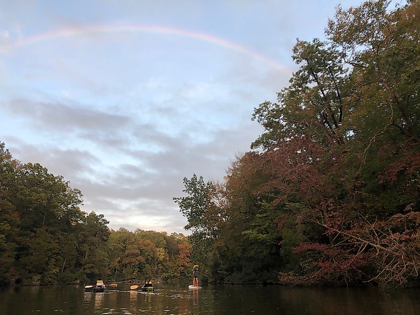 Pessoas andando de caiaqueno Lago Matoaka em Williamsburg, Virgínia. Crédito da imagem: Pbritti via Wikimedia Commons.