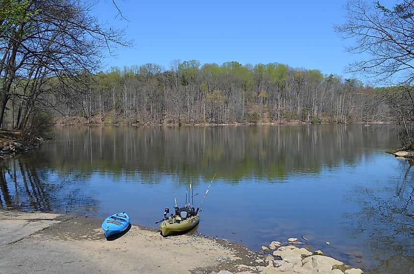 O pitoresco reservatório Rocky Gorge perto de Fulton, Maryland. Crédito da imagem: ssfaulkn, domínio público, via Wikimedia Commons.