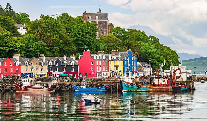 Tobermory é uma pequena cidade encantadora na Ilha de Mull que provavelmente remonta ao início de 1700, quando era uma cidade de pescadores. A Sociedade Britânica de Pesca e o agente da Sociedade, John Knox, visitaram a área em 1786 e estabeleceram a cidade como uma comunidade pesqueira. A cidade ganhou o nome gaélico de tobar-mhoire, que pode ser traduzido livremente como “Poço de Maria”. A cidade tem este nome por causa do lendário poço sagrado, que foi dedicado à Virgem Maria.