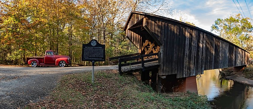 A ponte coberta Red Oak Creek em Woodbury, Geórgia. Crédito editorial: JNix/Shutterstock.com