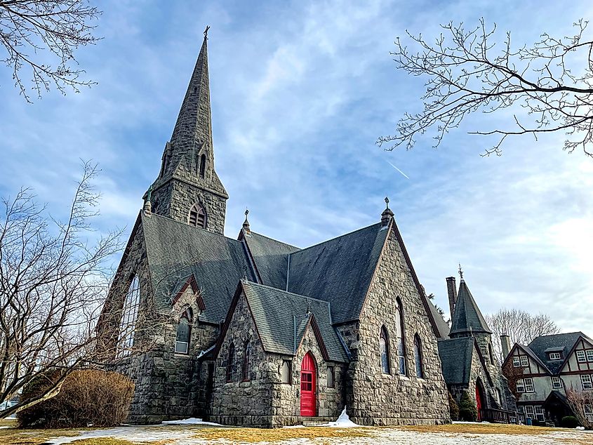 Arquitetura gótica vitoriana intrincada na Igreja Episcopal de St. Mary-in-the-Highlands em Cold Spring, Nova York. Crédito editorial: Brian Logan Photography / Shutterstock.com.