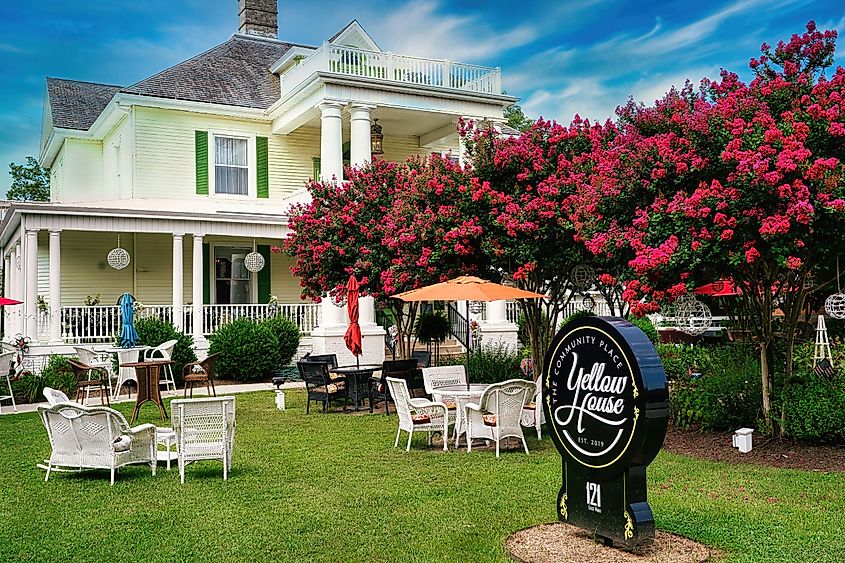 The Yellow House, um popular ponto de encontro de fim de semana em Clayton, Carolina do Norte. Crédito editorial: Wileydoc/Shutterstock.com
