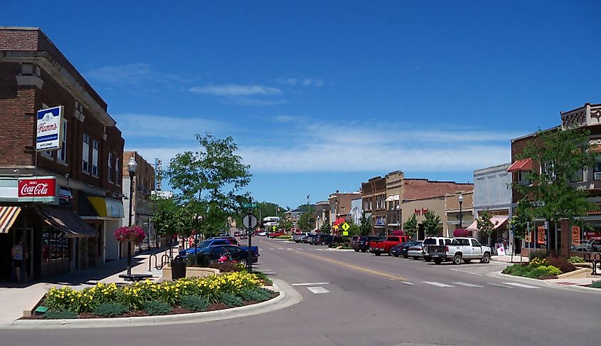 Main Street, Vermillion, Dakota do Sul. Crédito da imagem: J. Stephen Conn via Flickr.com.
