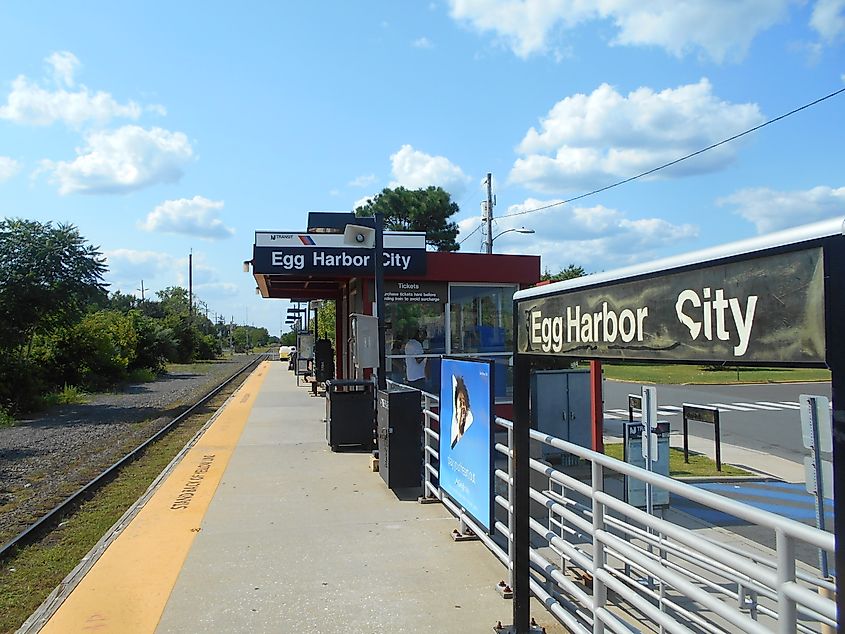 Estação ferroviária de Egg Harbor City em Egg Harbor City, Nova Jersey. Por Adam Moss –Flickr, CC BY-SA 2.0,Wikimedia Commons