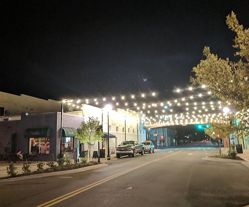 Downtwon Hartsville, Carolina do Sul, à noite. Crédito da imagem: Evanoco via Wikimedia Commons.