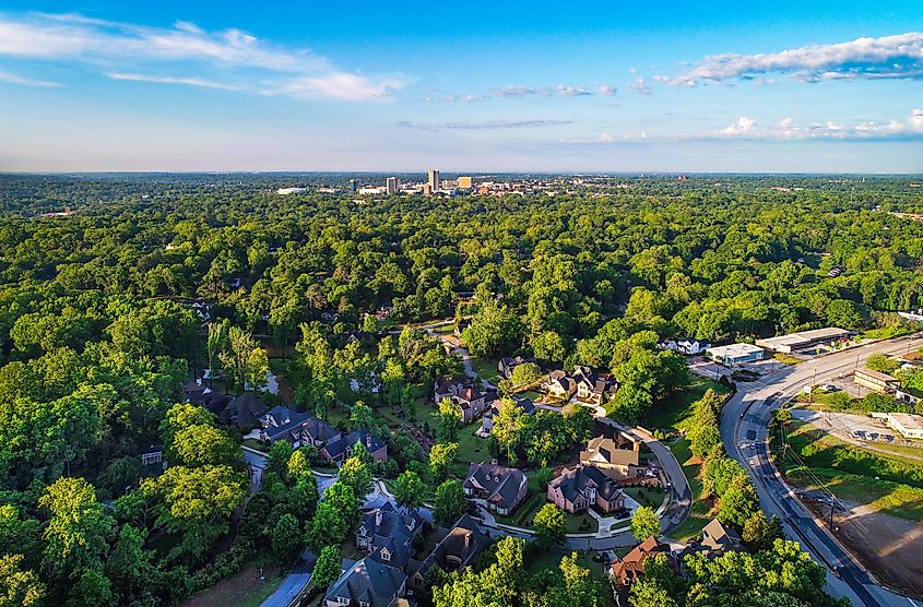 Vista aérea do horizonte de Greenville, Carolina do Sul, da montanha de Paris.