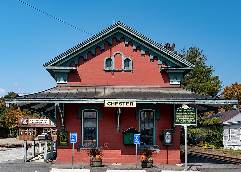 A estação ferroviária em Chester, Vermont. Crédito editorial: Bob LoCicero/Shutterstock.com.