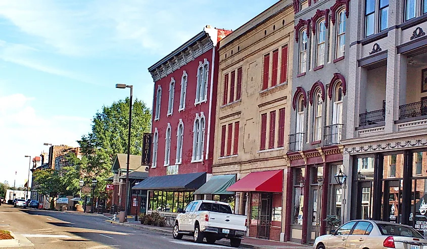 Edifícios históricos na rua principal do centro de Paducah, Kentucky. Crédito da imagem Angela N Perryman via Shutterstock