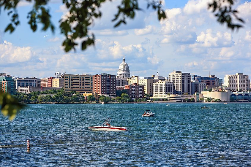 O belo Lago Monona e o horizonte de Madison. Crédito editorial: Aaron da L.A. Photography / Shutterstock.com