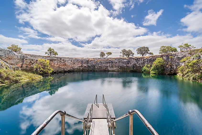 Little Blue Lake em Mount Gambier, Sul da Austrália.