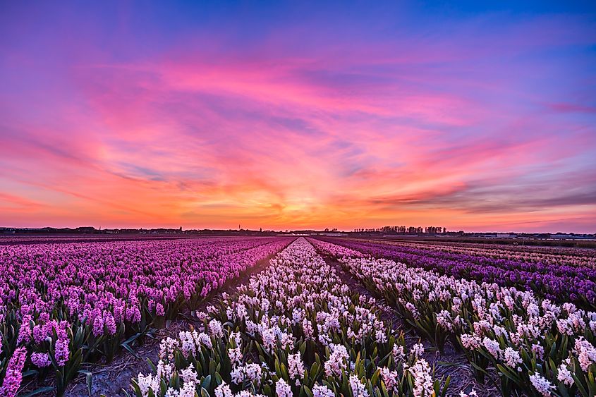 Você está com vontade de brincar em um campo de flores brilhantes e florescentes? Lisse é o lugar certo. Lisse é a cidade das flores mais famosa da Holanda e o local perfeito para parar e cheirar as tulipas, narcisos e jacintos. Admire as icônicas tulipas holandesas no Keukenhof Tulip Park, onde mais de 7 milhões de flores desabrocham durante a temporada das tulipas. Os próximos Lagos Kager são um paraíso onde você pode embarcar em um barco e navegar pelas vistas panorâmicas de moinhos de vento e pólderes (terras recuperadas). Além disso, explorar as vastas paisagens de Lisse a pé irá refrescar os visitantes. A rota de caminhada de Bollenstreek abriu caminhos para os visitantes ao longo de prados e campos de flores brilhantes.