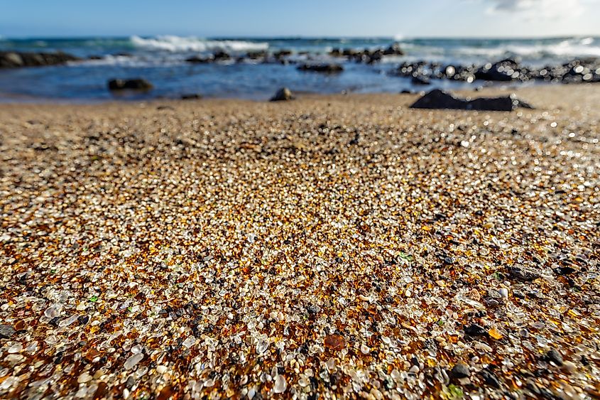 Glass Beach pode ser encontrada perto da cidade de Hanapepe, na ilha de Kauai. A praia é conhecida por sua abundância de vidro marinho liso e colorido, que foi criado ao longo de décadas a partir de garrafas de vidro, cerâmicas e outros materiais descartados, principalmente descartados em operações industriais próximas. Um bom pedaço do vidro levado à costa depois de anos também estava simplesmente sendo espalhado por moradores e pescadores locais, acabando sendo jogado pelas ondas do oceano em pequenos pedaços polidos que criam um local estranhamente pitoresco.