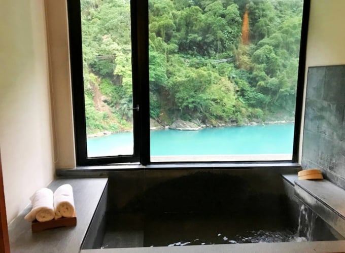 Para um gostinho de luxo, o Volando Urai Spring Spa & Resort oferece alguns quartos lindamente projetados, completos com banheiras de água termal privativas. Os preços não são baratos, no entanto, espere pagar cerca de NT$ 16.050 por noite para duas pessoas.