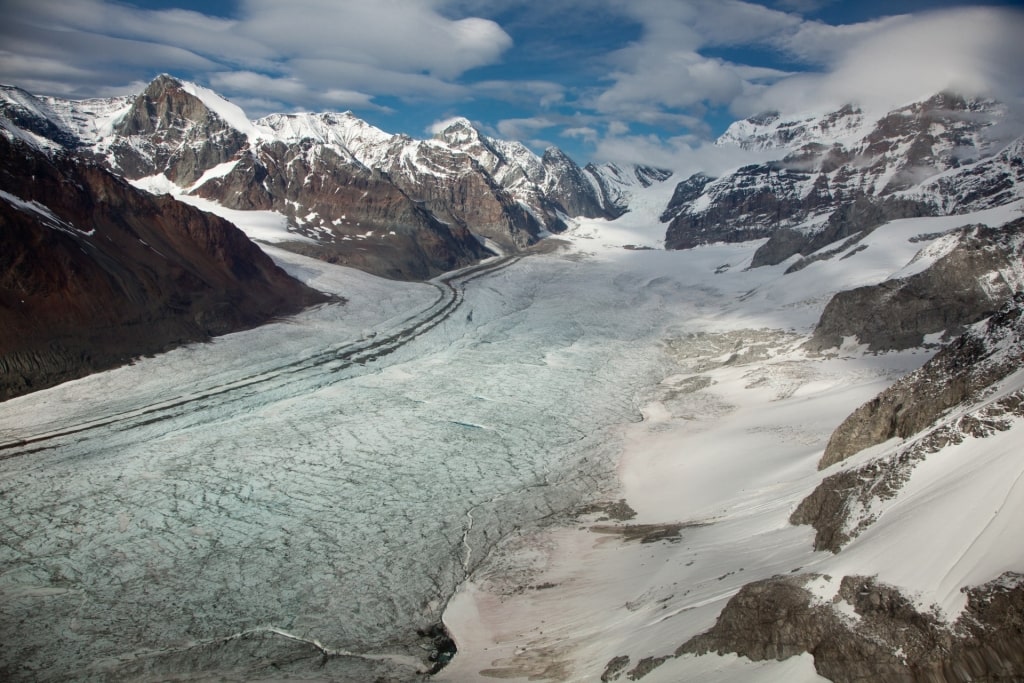 Escolha um hidroavião e você desfrutará da adrenalina da decolagem na água e das vistas deslumbrantes das montanhas e geleiras do seu assento na janela. Os helicópteros voam mais baixo, então você se sentirá como se estivesse deslizando sobre a copa da floresta e estará acima para ver fendas individuais nas geleiras. Helicópteros também podem pousar nas geleiras para caminhadas, escaladas e até mesmo para dirigir em alta velocidade.