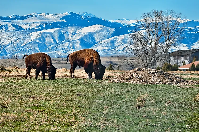 Bisão americano pastando nas pastagens perto de Sheridan, Wyoming