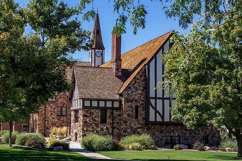 Uma igreja histórica na cidade de Cedar City, Utah.